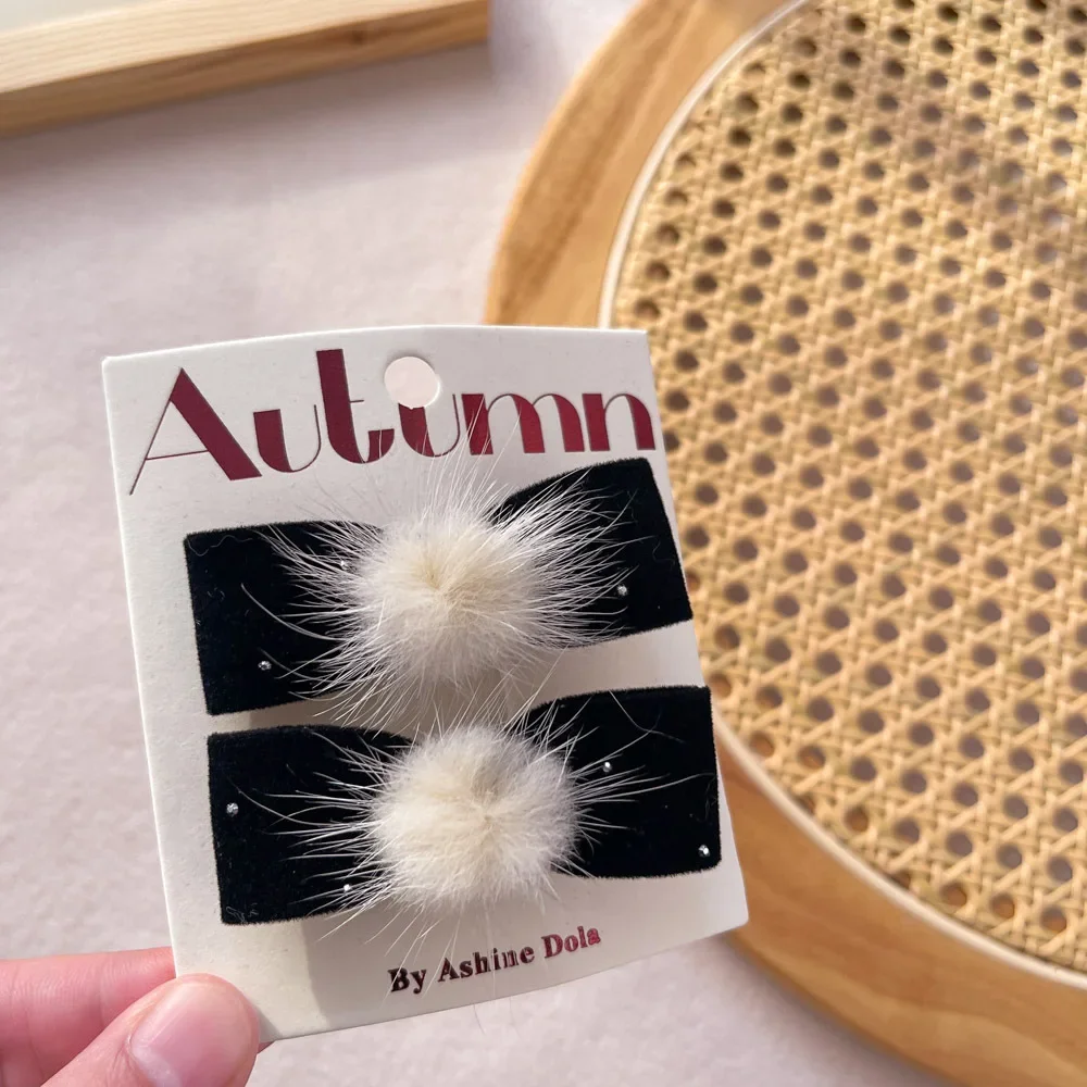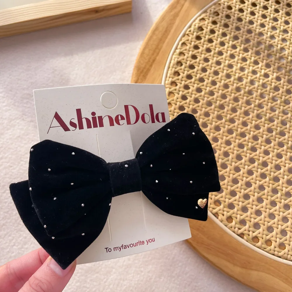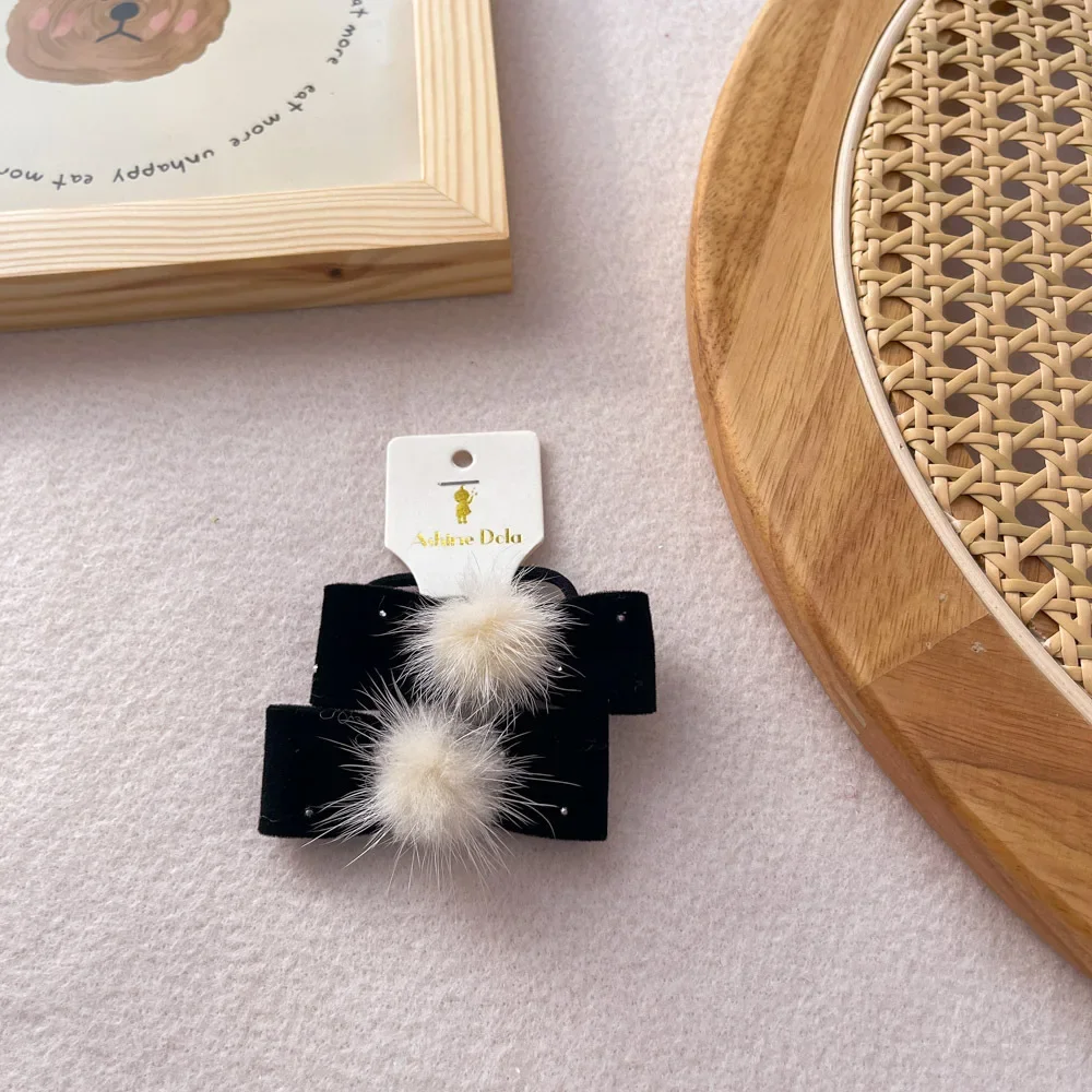 Baby Black Velvet Hair Bows Ties Kids Girls Ponytail Holder Elastic Hair Bands Korean Pompom Rope Scrunchies Hair Accessories