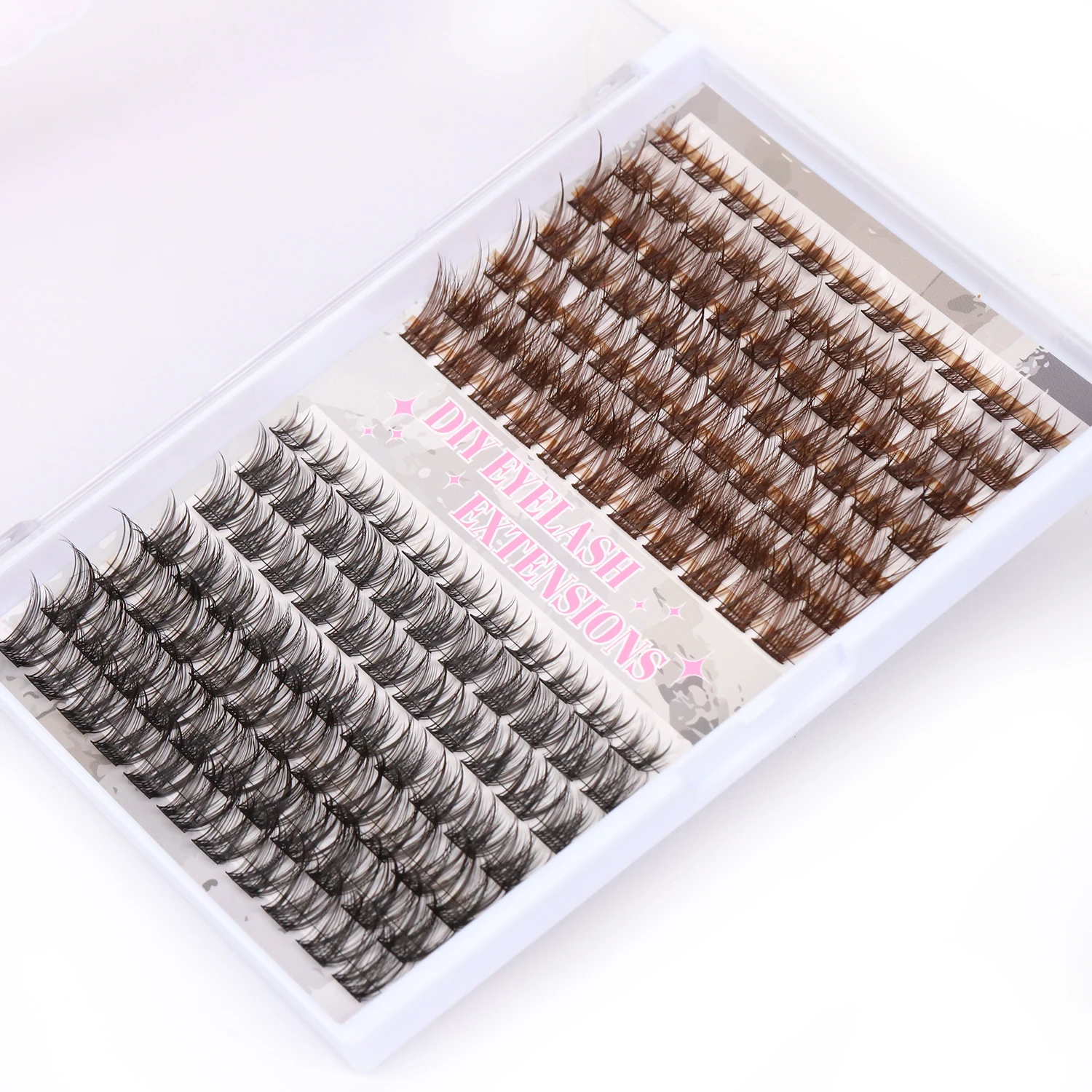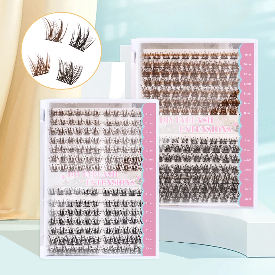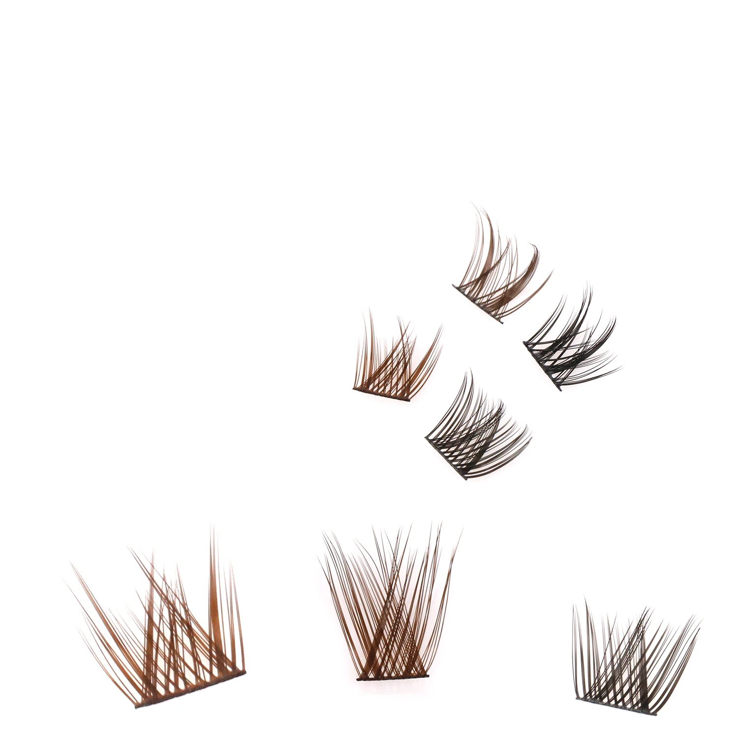 Brown And Black Cluster at Home Eyelashes DIY Mixed Color Individual Fan Lashes Extension Fluffy 3D Effect Faux Makeup Eyelashes
